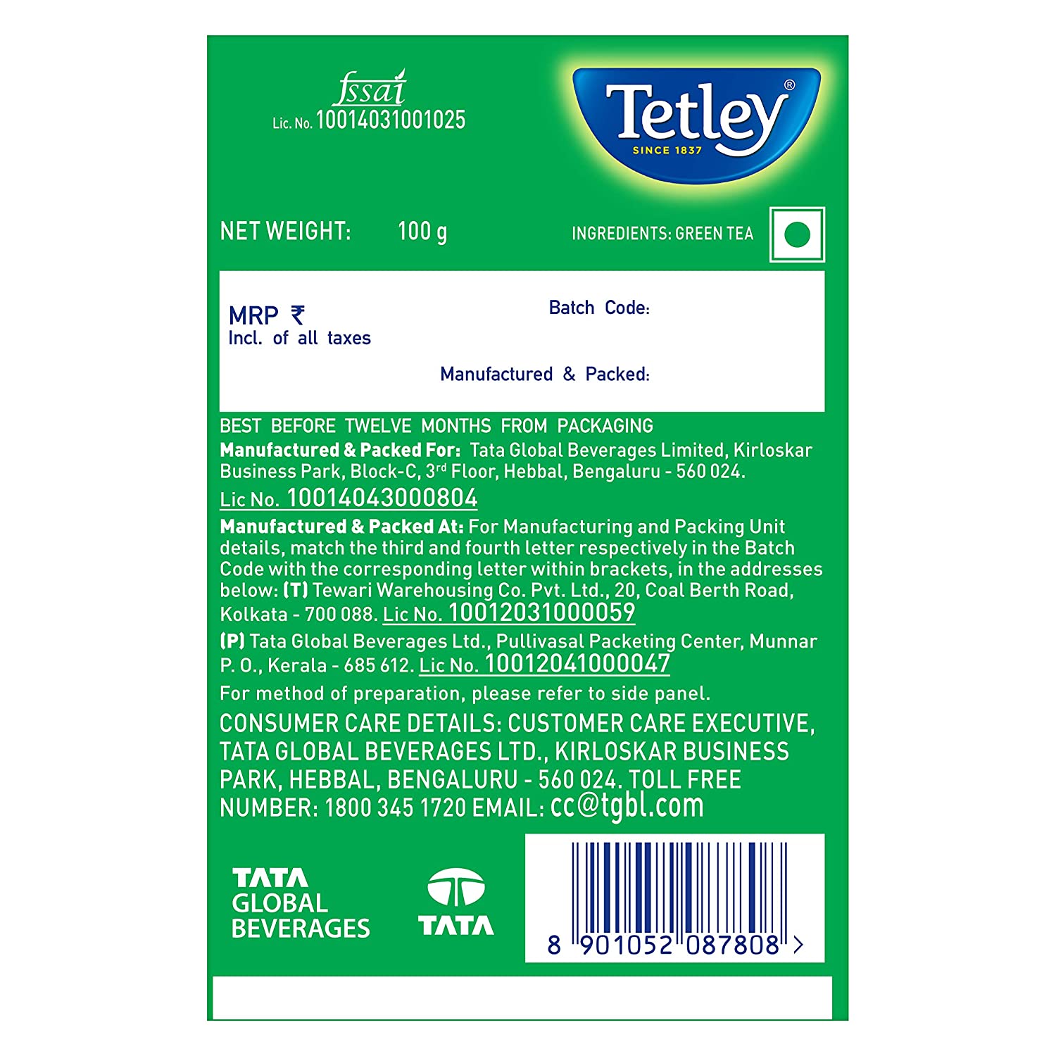 | Manufacturer | Tata Global Beverages |